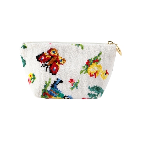 フェイラーの人気柄「ハイジ」のポーチです。てんとう虫やちょうちょ、小鳥などドイツの野にいる小さな生き物たちのモチーフをお楽しみいただけます。マチ付きで収納力に優れており、バッグの中で散らかりがちなアイテムをすっきりと持ち歩くことができます。内側には小物をしまいやすいポケット付きです。