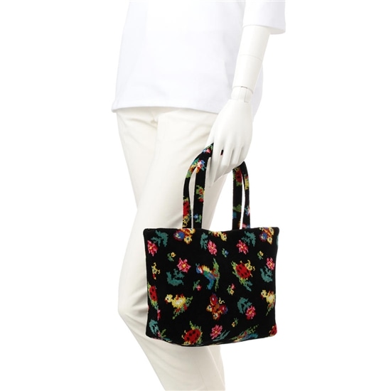 てんとう虫にちょうちょ、小鳥たち、小さな花。ドイツの野にいる小さな生き物たちが織り成す楽しい柄をデザインした「ハイジ」シリーズのバッグです。マチがしっかりあるので、コンパクトながら見た目より収納力があります。ちょっとしたお出かけに重宝するアイテムです。