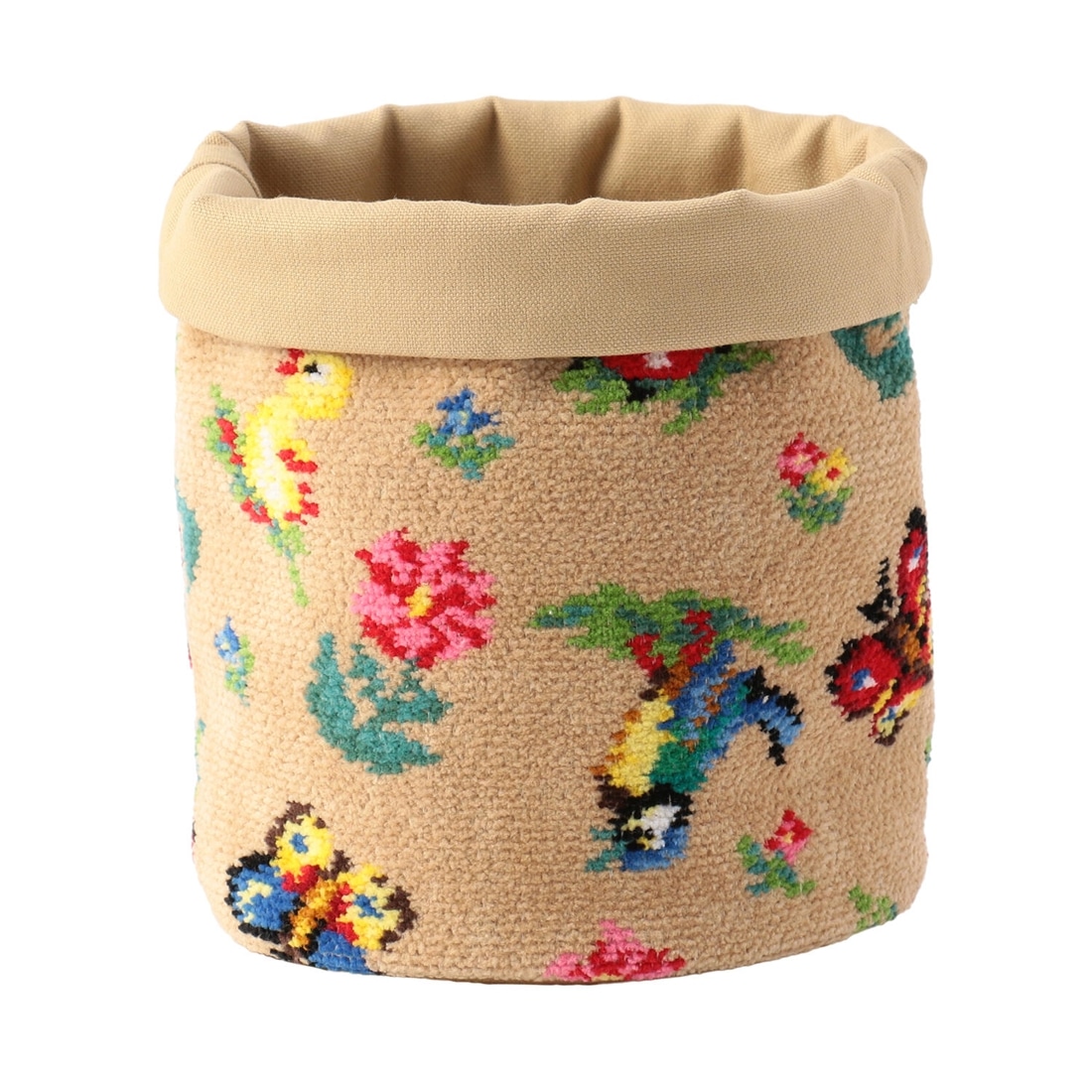 愛らしいてんとう虫やちょうちょを描いた「ハイジ」柄のファブリックバスケット。ドイツの野にいる小さな生き物たちをイメージしました。丸底の愛らしいフォルムが目を引きます。卓上の筆記用具やリモコンなどのちょっとした小物を入れるのに重宝するアイテムです。