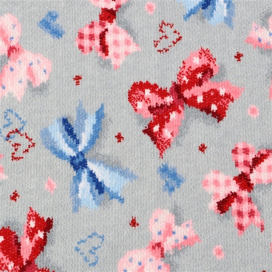 ドットやストライプ、チェックの可愛らしいリボンを全体にあしらった「ミルメルシー!」シリーズのハンドタオルです。小さなハートもちりばめて、愛らしい雰囲気に仕上げました。両端のライン使いもデザインのアクセントに。鮮やかなカラーリングも目を引きます。お部屋の雰囲気をぱっと明るくしてくれる、おすすめのアイテムです。