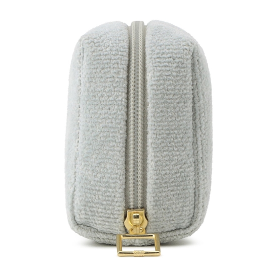 ワイドに開いて奥まで見やすい「ユニカラー」のキューブポーチです。3つの収納スペースがあるので鍵やコスメ、アクセサリーなど細かく仕分けが可能。シュニール織ならではのふっくらとした質感も魅力のひとつ。手洗いできるのもうれしいポイント。デザイン性と機能性を兼ね備えたアイテムです。