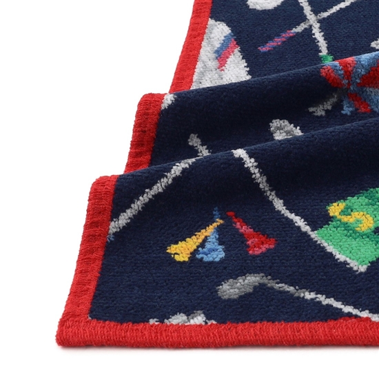 見ているだけで気分が上がる、ゴルフ道具を全体にちりばめた「ゴルフ」シリーズのプティバスです。カラフルな色彩を引き締める、ベースカラーのネイビーが大人っぽさを演出。アクセントのレッドが遊び心をプラスします。ベビーのおくるみとしてはもちろんのこと、キッズのお昼寝用肌掛けや、大人のひざ掛けとしても活躍します。