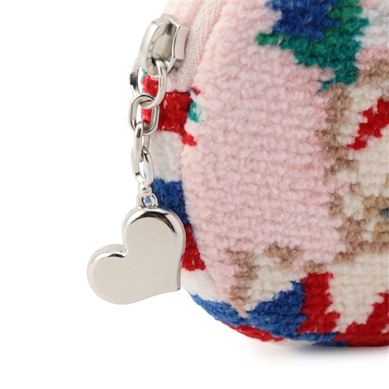 イヤホン、リップなどを持ち運ぶのに重宝する「ユニオンドウクール」のポーチです。コントラストのはっきりしたカラーリングで、華やかにデザインしました。チェーン付きのため、バッグのハンドルに付けて、チャームポーチとしてもお使いいただけます。同柄のハンカチ、ポーチと一緒にギフトにもおすすめです。