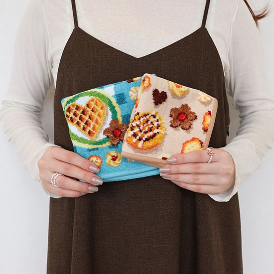 スウェーデンの習慣から着想を得た「フィーカタイム」のハンカチ。クッキーやワッフル、シナモンロールの香りがいまにも漂ってきそうな、魅力的な柄に仕上げました。お気に入りのお菓子と合わせて、お世話になった方への贈り物にしてみてはいかがでしょうか。
