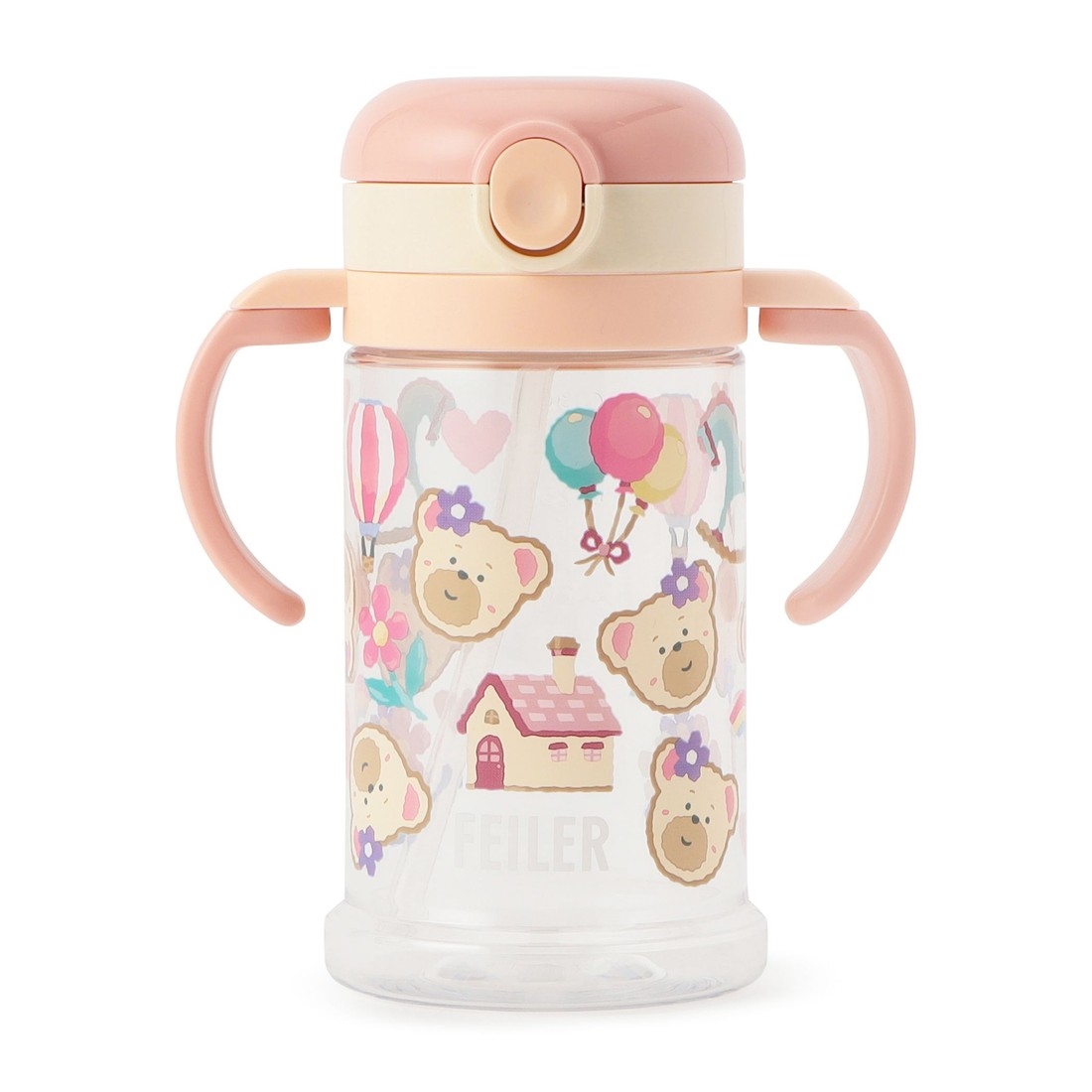 「リリアドリーミーハウス」のストローマグです。両手ハンドルが前後に折りたたたみできるので、収納するときもコンパクト。ショルダーベルトが付属するので、シーンによって付け替えもできます。ご自宅はもちろん、外出先での水分補給にも活躍するアイテムです。