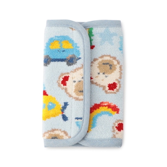 「リーベトレジャーボックス」のサッキングパッドです。よだれをカバーしながら、お出かけ時のコーディネートを彩ります。面ファスナーで手軽に着脱できるのも魅力的。複数持っていても便利なアイテムは出産祝いに贈るのにも重宝するアイテムです。