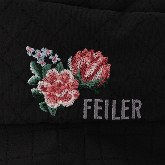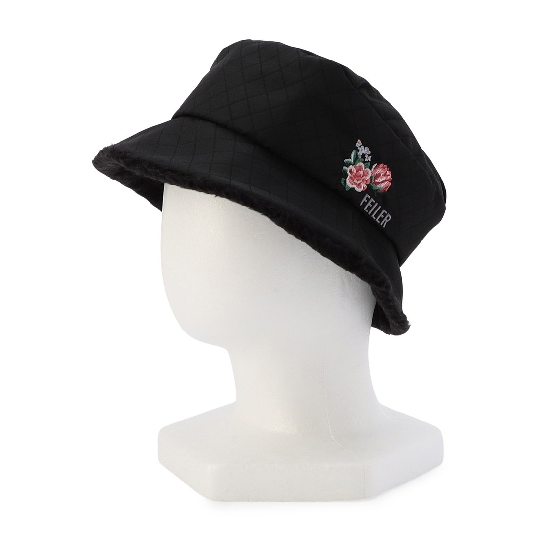 被りやすいシルエットにこだわった『ロマンス』の帽子です。ダイヤパターンのキルティング調素材が、洗練された雰囲気を演出します。サイドにはFEILERロゴとダリアを刺しゅうして、華やかなワンポイントに。フェイクファーで仕立てた、おしゃれなつば裏にも注目。グローブやスカーフと一緒にトータルコーディネートにもおすすめです。