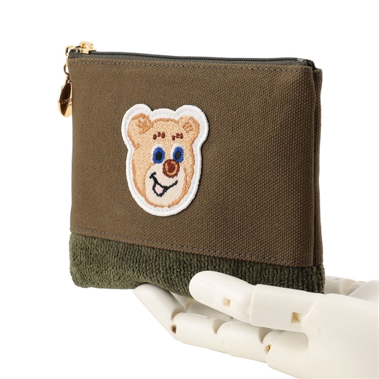 「オールドテディ」シリーズのワッペンポーチです。ちょっぴりいたずらっ子なクマの男の子の可愛いワッペンをあしらいました。ニコニコ笑顔は周りの人を元気にしてくれます。同系色のシュニール織を組み合わせ、表情に変化をプラス。ロゴ入りのラウンドチャームもポイントに。手のひらに乗る小さめサイズには、リップや小銭などをすっきりと収納可能です。