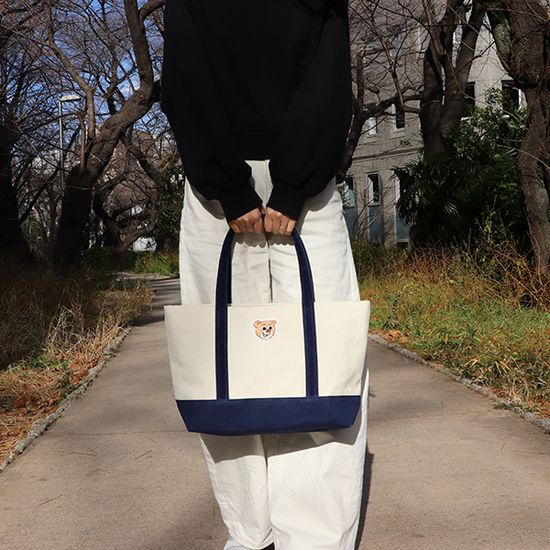 ドイツの森に住んでいるクマの男の子『オールドテディ』のワッペンをあしらったトートバッグです。ポップさとシックな印象のネイビーカラーが全体を引き締め、落ち着いた雰囲気に。内側のオープンポケットと、A4サイズがすっぽり入る実用的なサイズ感です。旅行にもご使用いただける、大容量な収納力のバッグです。