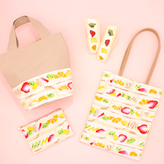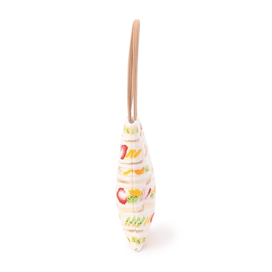 カラフルな「フルーツサンド」シリーズのトートバッグです。イチゴやキウイ、オレンジなどのフルーツとたっぷりのクリーム。満足感の高いスイーツができあがりました。きれいな断面には思わずうっとりしてしまいそう。長めのハンドルで肩掛けも可能に仕上がっています。スリムなフォルムでかさ張らないのも嬉しい。普段使いにおすすめしたい一品です。
