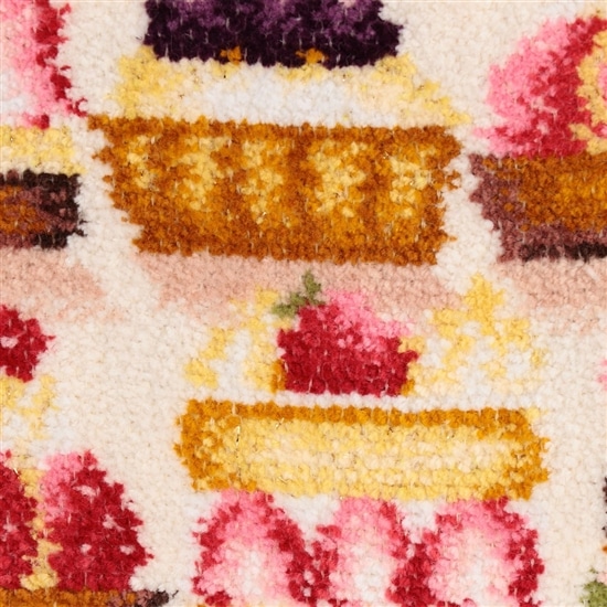 盛りだくさんのフルーツとクリームを贅沢にトッピングしたタルトやケーキを描いた、「ラブラリードルチェ」柄のハンカチポーチです。リップやティッシュといったちょっとした小物を収納できます。ハンカチとしてもお使いいただける、機能性に優れた便利なアイテムです。