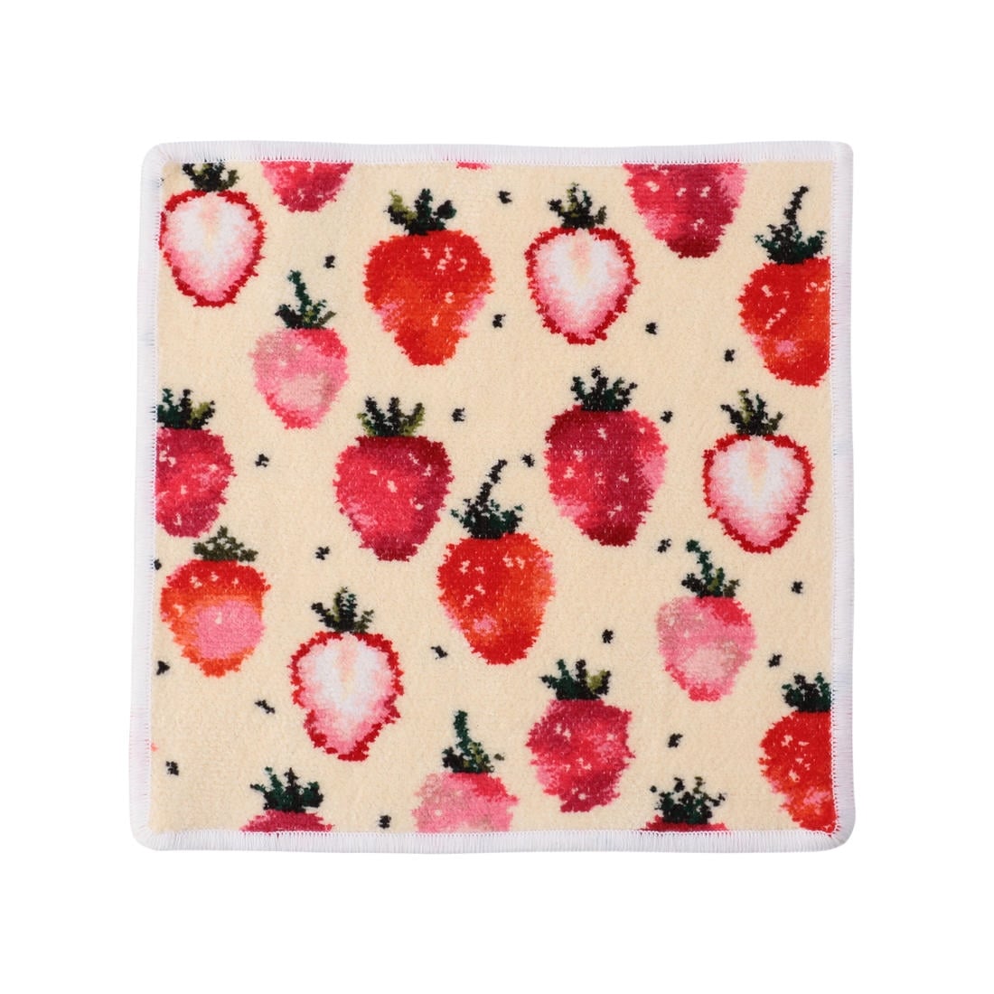 みずみずしいストロベリーを描いた可愛らしい「ストロベリードット」シリーズのハンカチ。全体にちりばめた細やかなドット柄がアクセントに。色鮮やかなカラーリングも魅力的。端を配色ラインで縁取ってデザインを引き締めました。ご自身用はもちろん、ちょっとしたプレゼントにもおすすめの1品です。