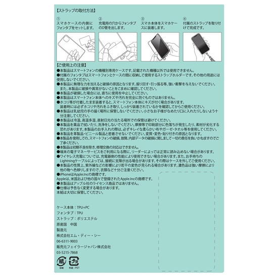 | 素材: | 本体 TPU+PC (ポリカーボネート) / フォンタブ TPU / ストラップ ポリエステル |