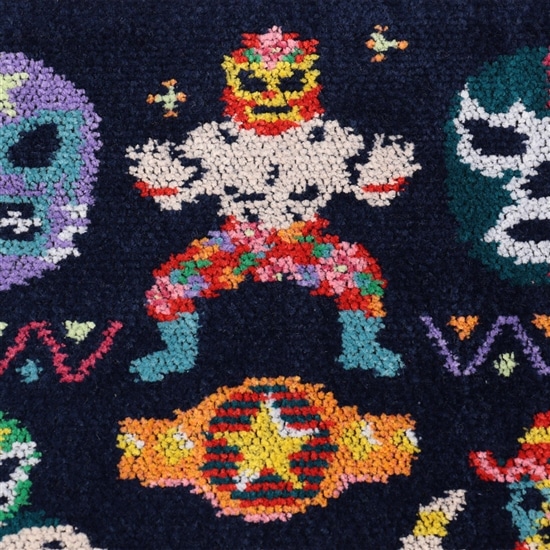 3人の覆面レスラーがカッコよくポーズを決めた「ラブラリーファイター」シリーズのハンカチ。カラフルなマスクやコスチュームに加え、中央にはチャンピオンベルトをデザインしました。思わず目を引くユーモアたっぷりの1枚は、プレゼントにもぴったりです。