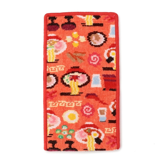 ラーメン好きにおすすめしたい「ラーメンイッチョウ!」シリーズのハンカチポーチです。どんぶり、なると、ねぎ、煮卵、のれん、丸椅子などラーメンを連想させるモチーフをデザインしました。ポケットにはリップやティッシュ、マスクなどのエチケット用品を入れることが可能。バッグから出すたびについ笑顔になるような、遊び心たっぷりの一品です。