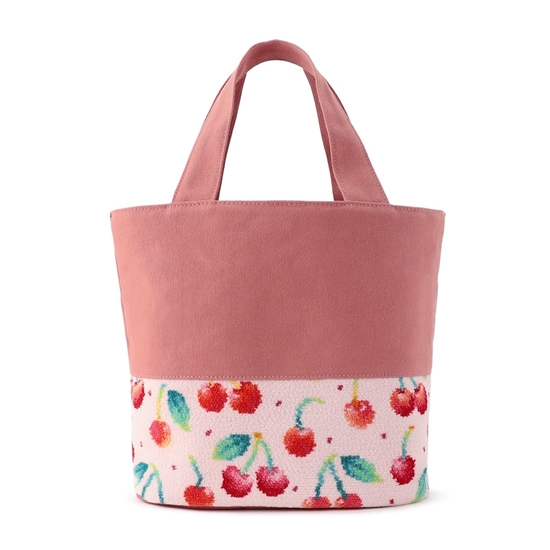 下部にあしらわれたチェリー柄がかわいらしい「チェリードット」のトートバッグです。フロントにはさりげなくロゴ刺しゅうを配しました。サイドにはマチがあり、内側はオープンポケット付きで実用的です。無地の生地と組み合わせることで、甘すぎず幅広い年代の方に使いやすい表情に仕上がっています。