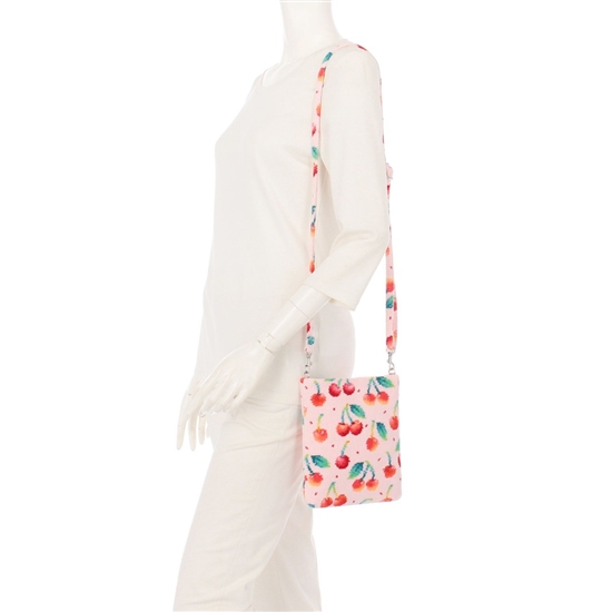 全体にチェリーとドットをあしらった、かわいい柄の「チェリードット」のショルダーバッグです。ショルダーベルトはお好みの長さに調整できるように仕上げています。間口にはマグネットが付いており、荷物がこぼれにくい仕様に。コーディネートのアクセントとして活躍してくれる一品です。