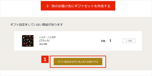 1ギフトラッピングをせずにお届けしたい商品がある場合は「ギフト設定をせずにまとめてお届けする」ボタンをクリックしてください 。